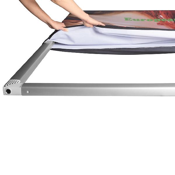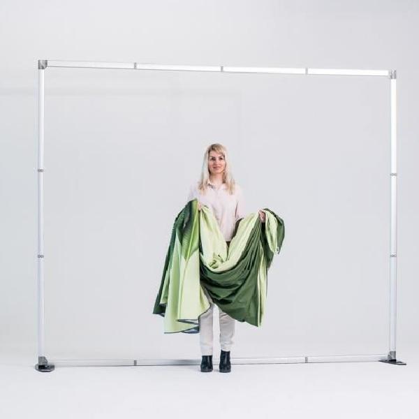 • Pared recta de tela fabricado en professional grade aluminum frame, con gráfico en tela.