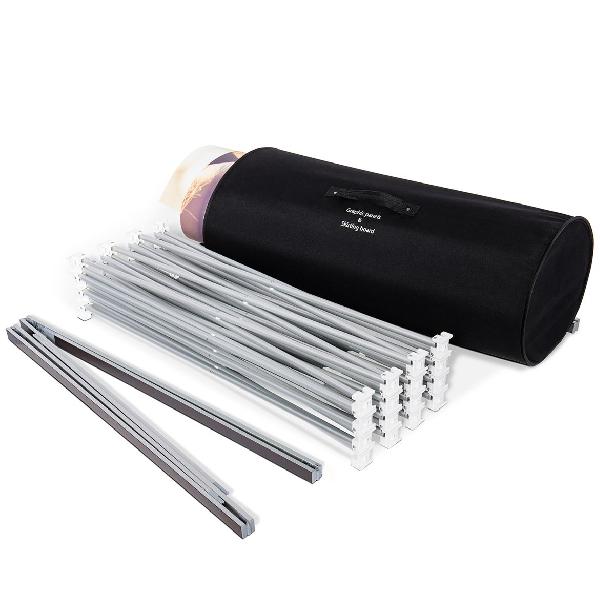 - Estructura tipo araña portátil de aluminio anodizado ligera, plegable con gráfico en lexan.