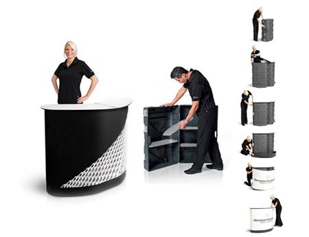 - Opción de mostrador que transporta y protege displays como Expand MediaWall,