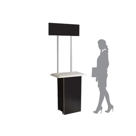 - Módulo de atención con sistema tipo araña de aluminio con mdf recubierto, con gráfico en tela.